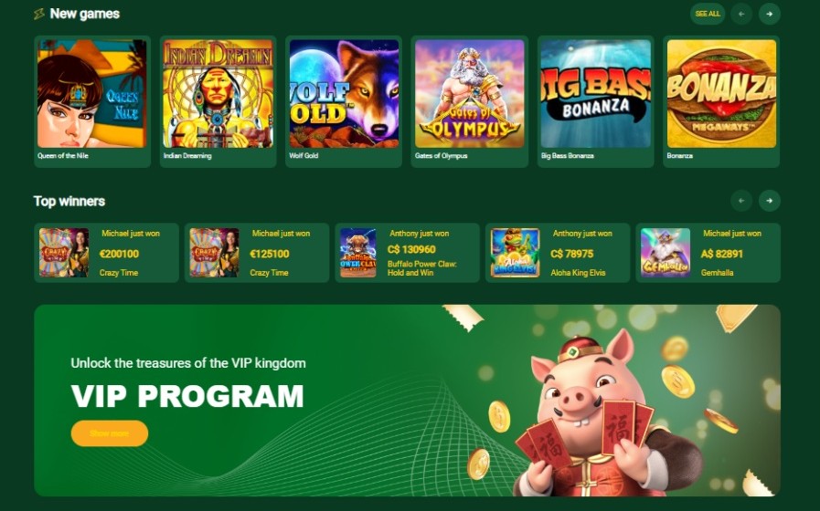 The casino offers more than 5000 games from over 40 leading providers, including Betsoft, Pragmatic Play, and Relax Gaming. Categories include online slots, table games, instant win titles, and a rich live casino section. Popular titles include Gold Rush with Johnny Cash, Chicken Road and Gates of Olympus.