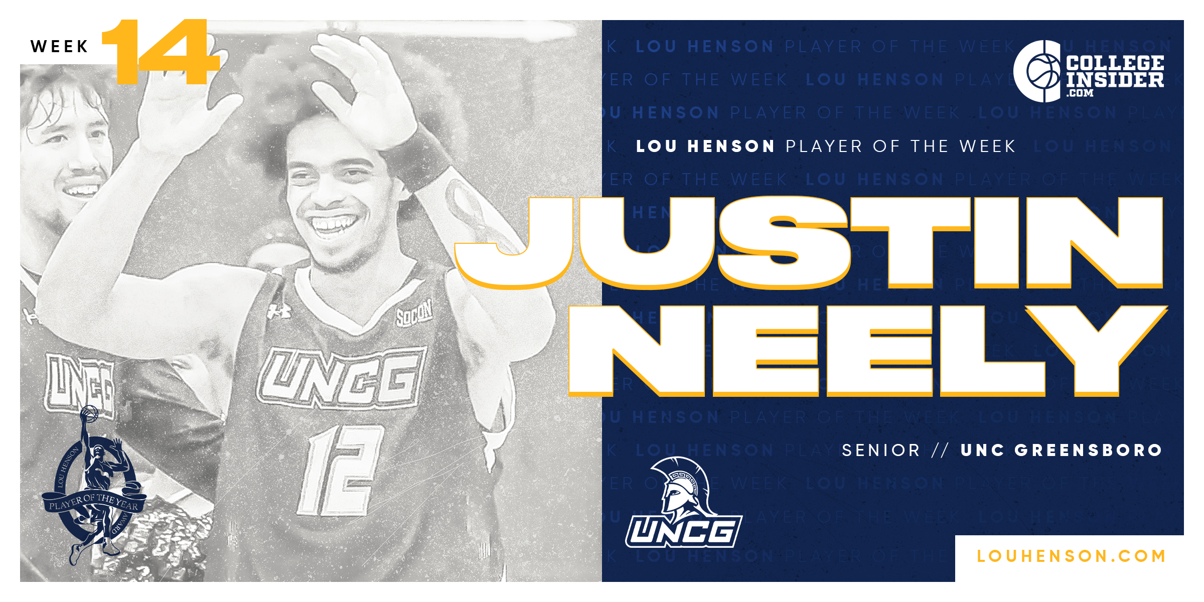 BOSTON, MA -- UNC Greensboro’s Justin Neely has been named the Lou Henson award National Player of the Week. The 6-foot-6 senior led the Spartans to a pair of conference wins last week.
