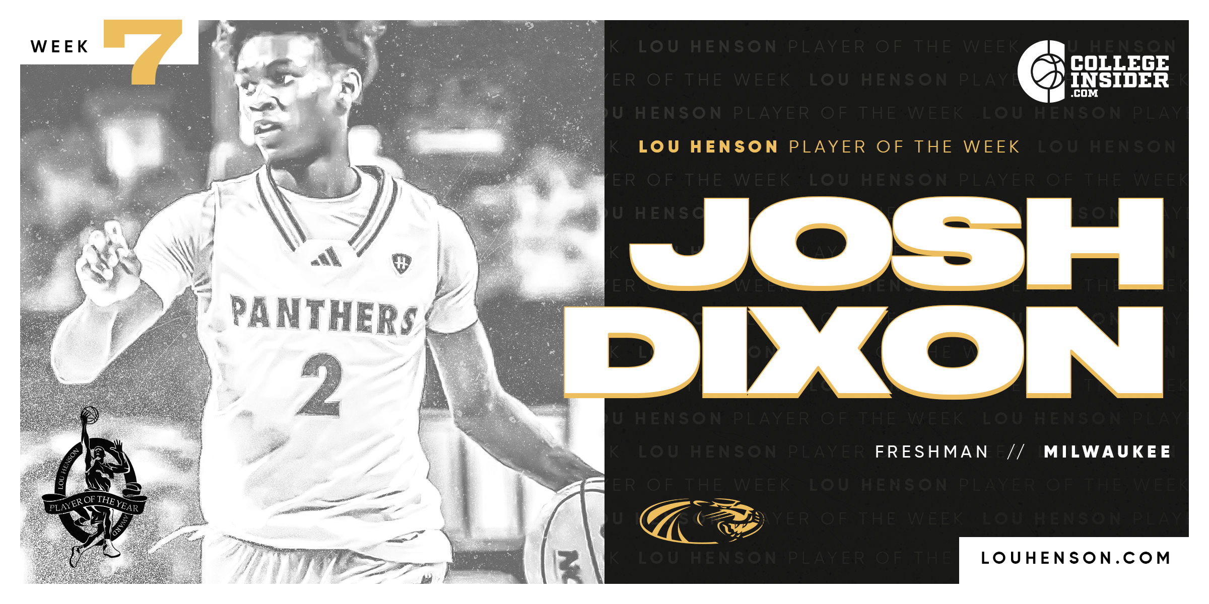 BOSTON, MA -- Milwaukee’s Josh Dixon has been named the Lou Henson award National Player of the Week. The 6-foot-1 freshman led the Panthers to a pair of wins last week.