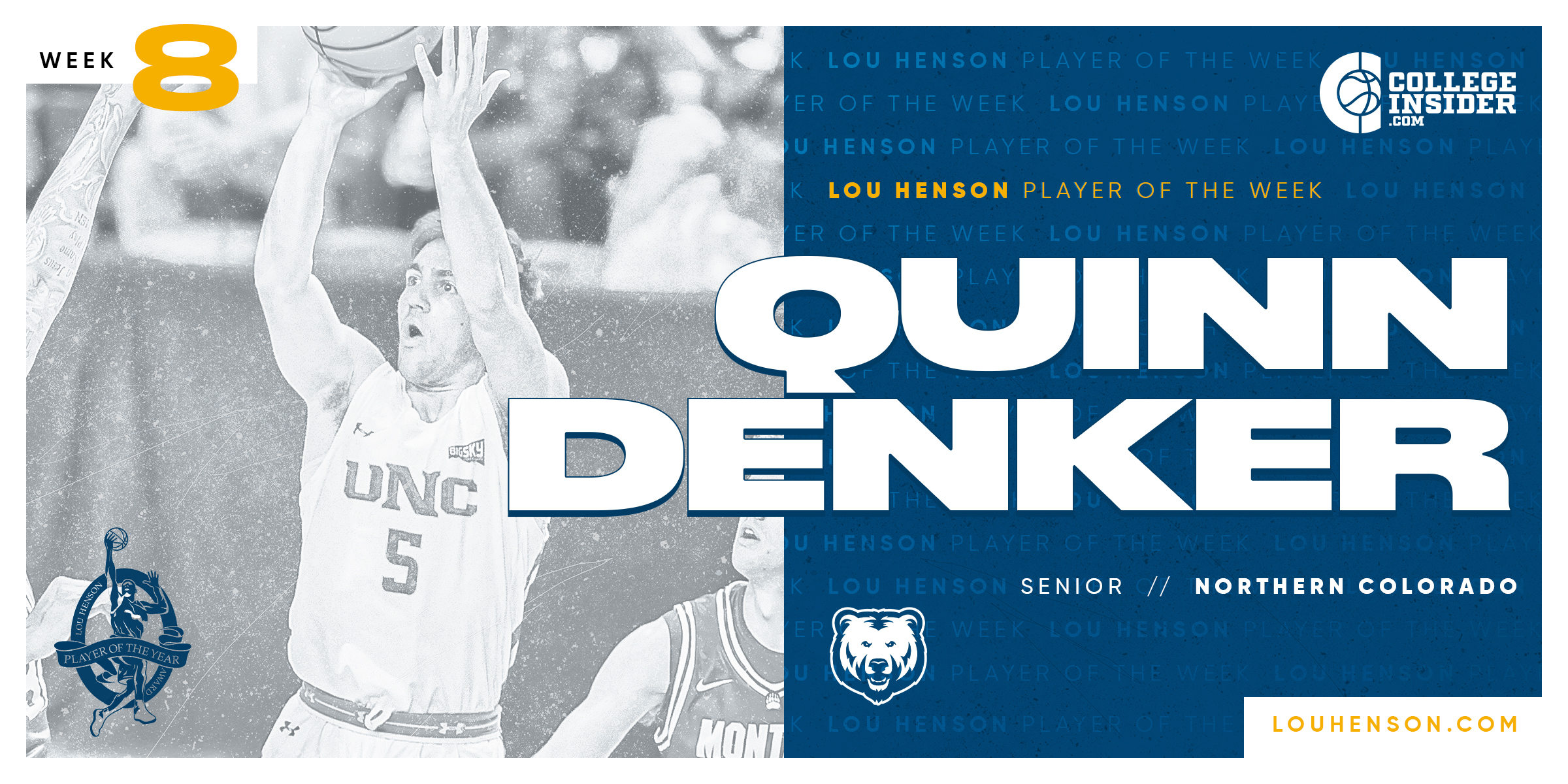 BOSTON, MA -- Northern Colorado’s Quinn Denker has been named the Lou Henson award National Player of the Week. The 6-foot-3 senior led the Bears to a big road win over in-state rival Colorado last week.